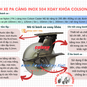BÁNH XE 200mm XOAY KHÓA CÀNG INOX COLSON MỸ | BÁNH XE NYLON