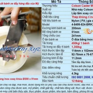 Các đặc tính nổi bật bánh xe 200mm xoay khóa càng inox Colson Mỹ :