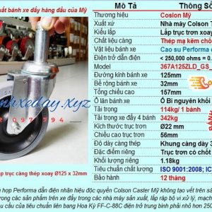 BÁNH XE CAO SU CHỐNG TĨNH ĐIỆN COLSON MỸ | BÁNH XE ĐẨY LẮP TRỤC TRƠN CÓ CHỐT BUNG