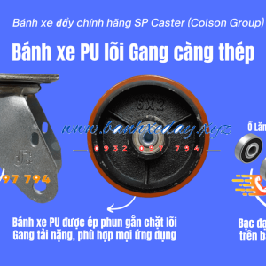 Bánh xe chịu tải PU Gang càng thép SP Caster (Colson Group) bảo hành 12 tháng
