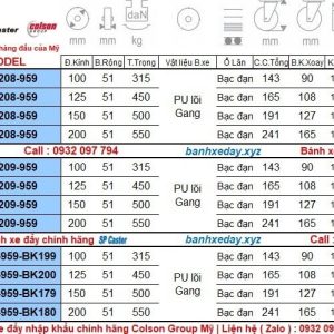 Bánh xe chịu tải PU gang 4in, 5in, 6in, 8in x 2in càng thép SP Caster ( Colson Group Mỹ )