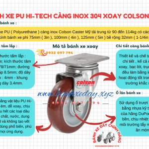 Các đặc tính nổi bật bánh xe nhựa màu đỏ 75mm càng inox 304 Colson Mỹ :