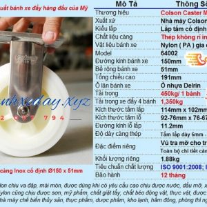 BÁNH XE NHỰA PA ĐẾ INOX COLSON MỸ | BÁNH XE KHÔNG XOAY D150